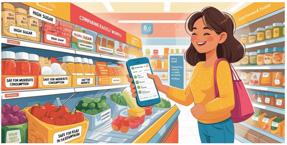 Food labels clearly say: “This product contains high sugar” or “Safe for moderate consumption.”